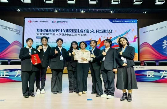 本次活动由安徽省发改委、安徽省教育厅主办,安徽广播电视台承办,中共芜湖市繁昌区委区政府联合承办,旨在加强新时代校园诚信文化建设,激发全省大学生对思想政治教育的持续思考与认识,引导学生强化诚信意识,树立诚信理念。比赛设置合肥赛区、芜湖繁昌赛区两个分赛区,芜湖繁昌赛区包括安徽师范大学、安徽财经大学、安徽工程大学、安徽理工大学、安庆师范大学等共计40所高校参加,赛区获胜前八支高校队伍将代表芜湖繁昌赛区参加全省总决赛。经校团委与公法学院推荐,我校由公法学院法学系副主任侯霞老师带队、选派法221刘静怡、法221刘心怡、法222杨超然、法223韩怡慧、法224苏宁、生231夏捷、能231高凡淇共7名学生参赛,并在此项比赛中取得佳绩!