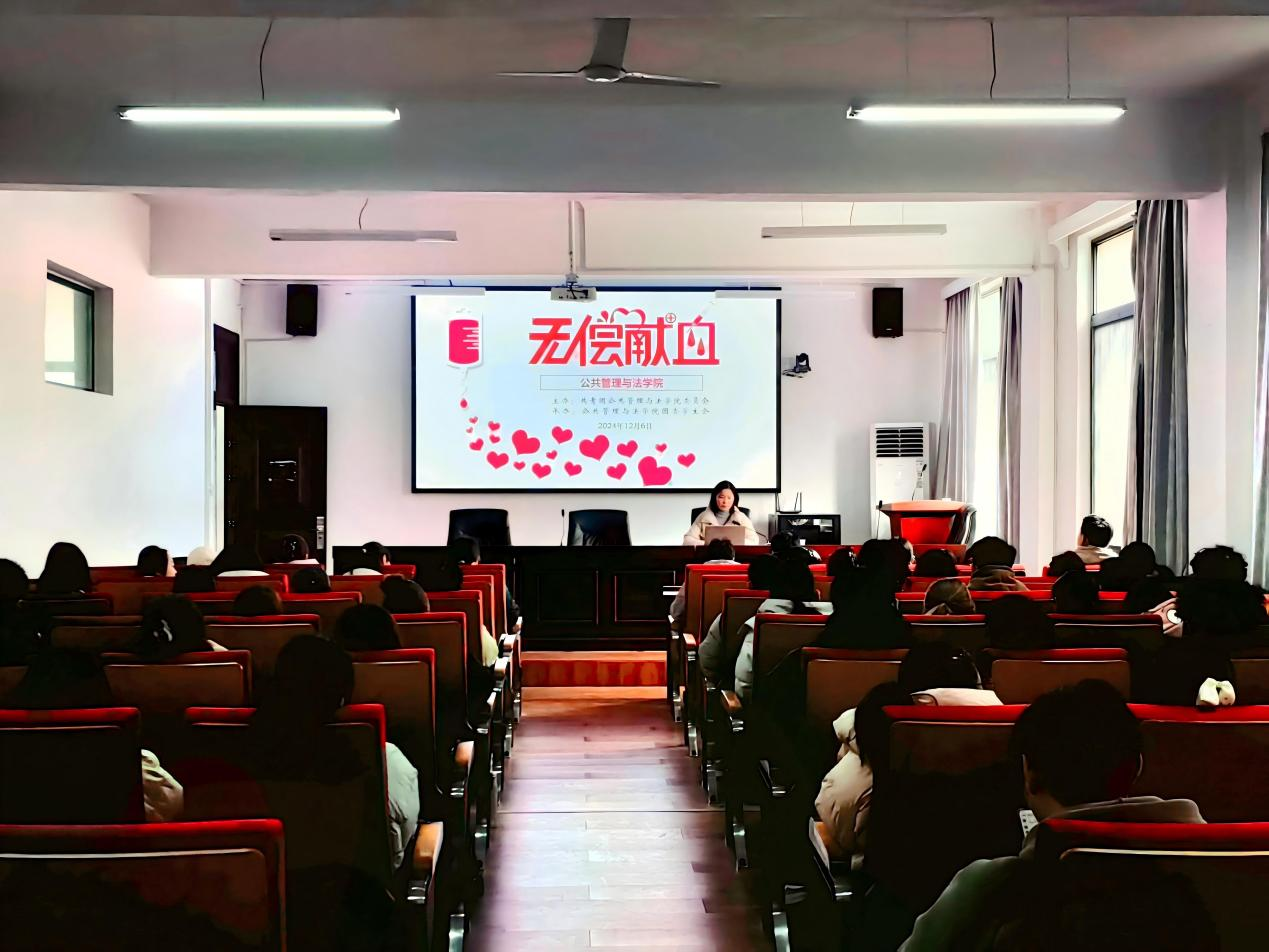 2024年5月26日下午,公共管理与法学院在公法楼301学术报告厅成功举办无偿献血主题讲座,学院23级辅导员朱玲老师受邀担任主讲,90余名师生共同参与这场充满人文关怀的公益课堂。