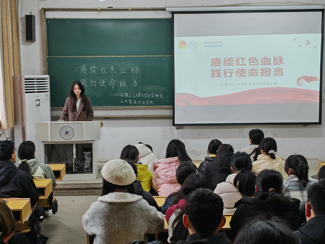 为进一步引导广大青年学习贯彻党的二十届三中全会精神,了解习近平总书记在全国教育大会上的重要讲话精神,校第九届优秀学子宣讲团成员燕文勤于3月3日在佳山校区教一115教室开展“赓续红色血脉,践行使命担当”主题宣讲活动,公共管理与法学院各年级学生代表50余人参加。