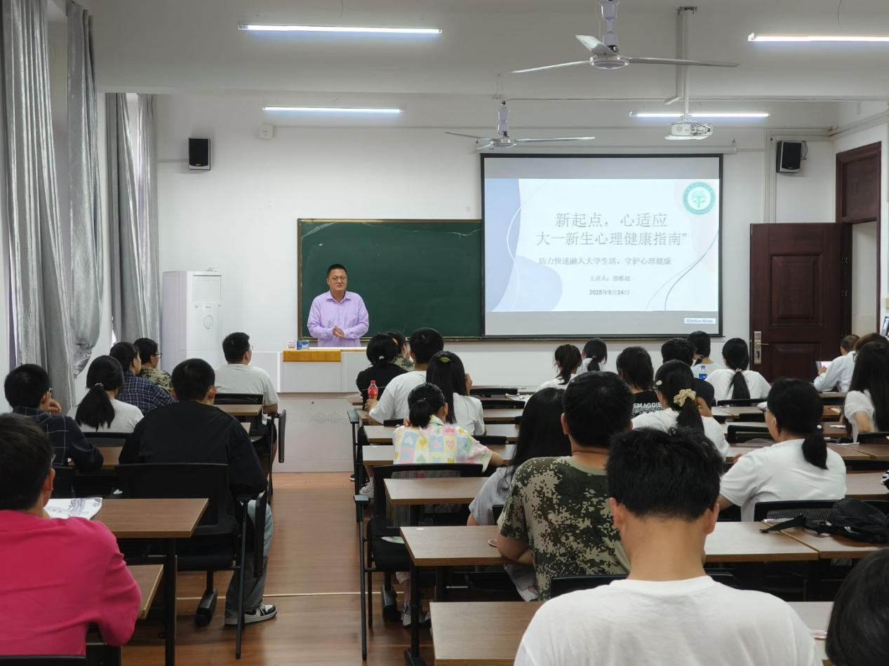 为帮助2025级新生更好地融入大学环境,缓解入学初期的心理压力,9月24日,公法学院心理协会在公法楼举办了"新起点,心适应"主题心理讲座。本次讲座特邀院心理工作站负责人邢维迢担任主讲,50名新生现场参与。