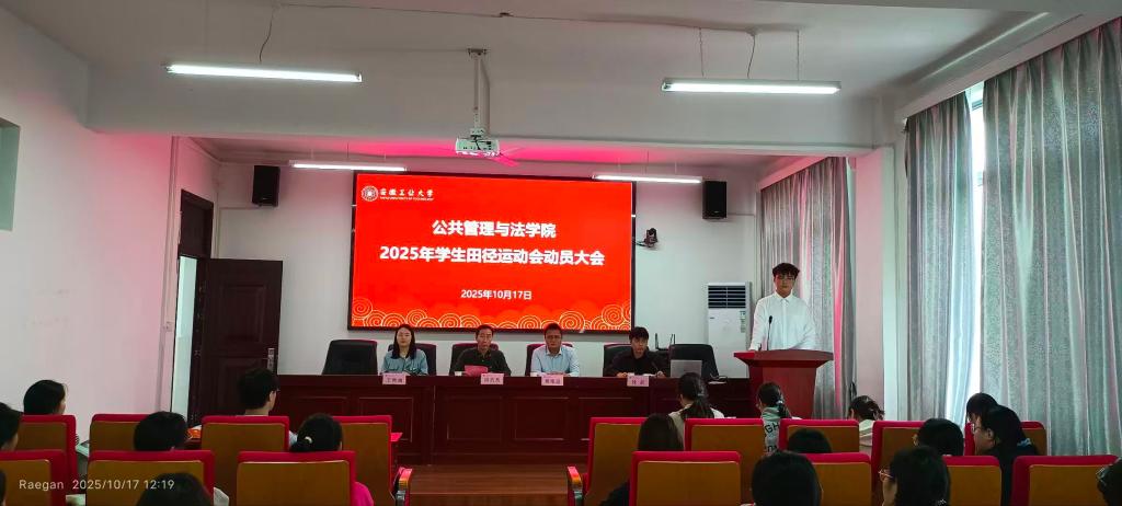为了激发学生的运动热情,凝聚集体向心力,确保学院在学校运动会中展现良好风貌,公法学院于2025年10月17日开展田径运动会动员大会。公共管理与法学院党委副书记、纪委书记、学工副院长周浩然,团学负责人钱前,新生辅导员邢维迢和王秋丽出席会议,全体参赛运动员以及志愿者参加会议。