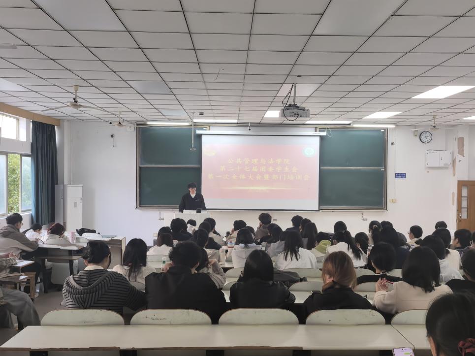 为全面提升学生干部的综合素质与工作能力,2025年11月3日下午,公法学院主席团于教三南202举行了第二十七届团委学生会全体大会暨部门培训会,学院团学工作负责人钱前、院团委学生会全体成员参与,院主席团成员余天阳主持。