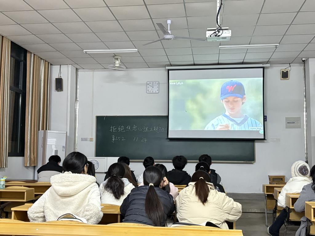 为探索心理健康教育新形式,提升学生心理素养,2025年11月27日,公共管理与法学院心理协会在各班晚自习教室组织开展了“心晴意动,影鉴人心”主题观影活动。本次活动旨在通过集体观影与交流,降低学生对心理话题的抵触感,引导其在光影艺术中反思自我,学习情绪管理与应对生活压力。活动面向25级学生,由各班心理委员组织展开,现场氛围有序而温馨。