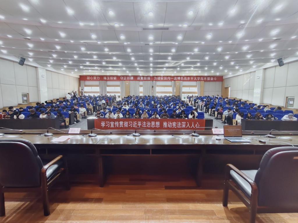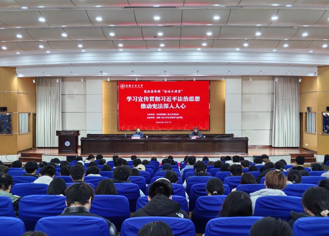 为深化青少年宪法法治教育,深入贯彻党的二十大精神,全面落实习近平总书记关于教育系统“八五”普法规划要求,由共青团安徽工业大学委员会主办,安徽工业大学公共管理与法学院承办的“宪法宣传周”系列活动于2025年12月4日在佳山校区开展,吸引了全校学生的踊跃参与。