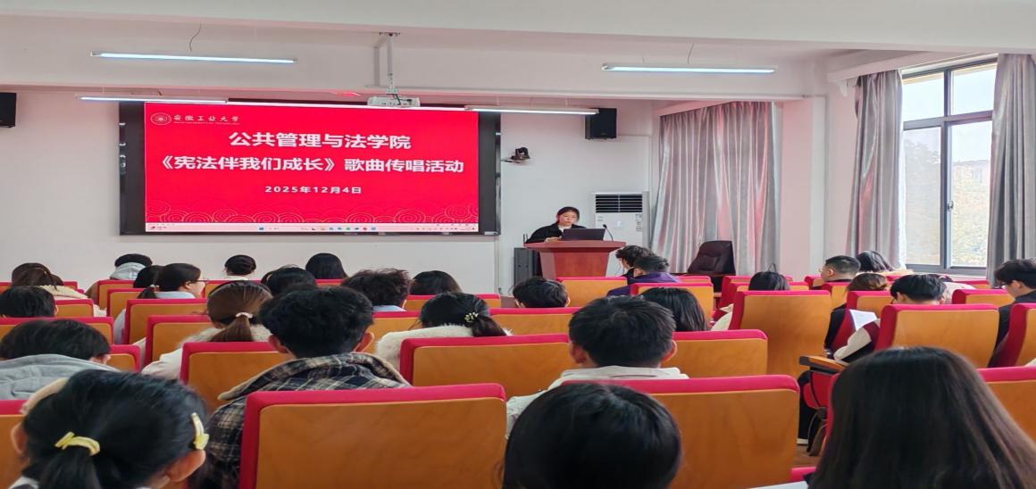为学习贯彻习近平法治思想,聚焦宪法教育融入青少年成长全过程,着力引导青年学子树立宪法意识、增强法治观念。12月4日下午两点,公法学院在佳山校区公法楼301开展《宪法伴我们成长》歌曲传唱活动,以歌曲传唱为载体深化宪法宣传教育。公共管理与法学院党委副书记、纪委书记、学工副院长周浩然,团委书记钱前,以及2025级本科生辅导员王秋丽出席此次活动,学院各专业共计70名学生踊跃参与,一同感悟宪法精神、传递法治信仰。