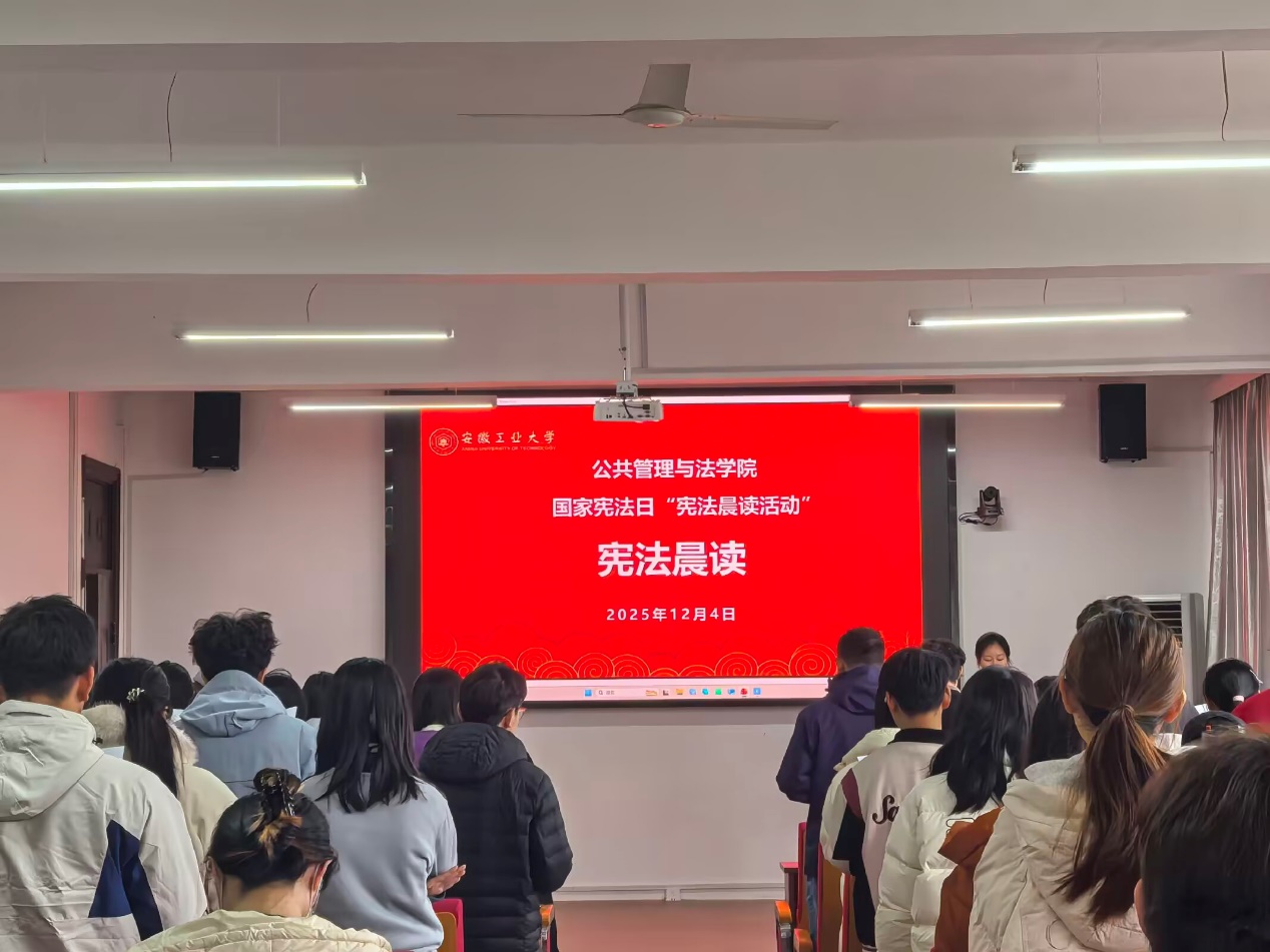 为深化青少年宪法法治教育,全面落实习近平法治思想、习近平总书记关于教育的重要论述和全国教育大会精神、教育系统“八五”普法规划要求,公共管理与法学院于2025年12月4日在佳山校区公法楼301开展国家宪法日“宪法晨读”活动。公共管理与法学院党委副书记、纪委书记、学工副院长周浩然,公法学院团委书记钱前,公法学院2025级本科生辅导员王秋丽出席活动,学院各专业共70余名学生积极参与本次晨读活动。