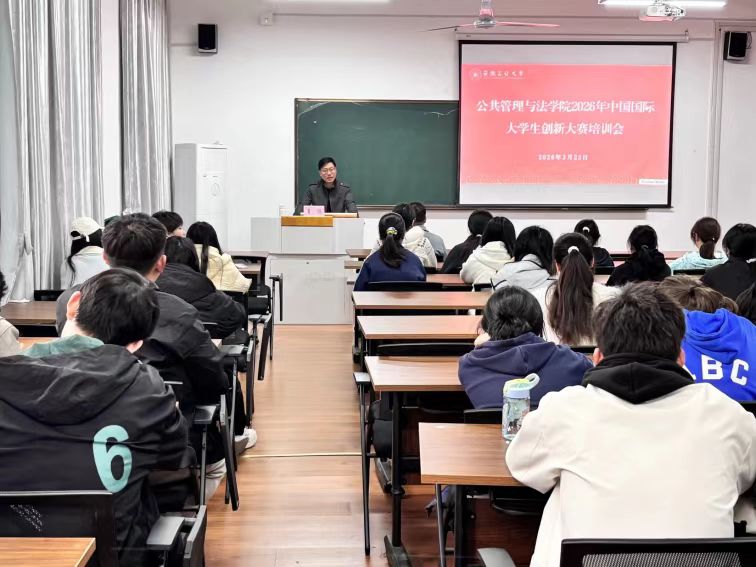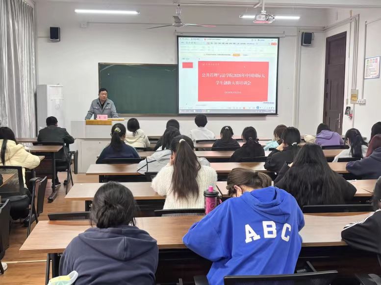 为了深入学习贯彻习近平新时代中国特色社会主义思想和党的二十大精神进一步培育新时代大学生的创新意识、锻造创新思维、提升创新能力,2026年3月23日,公共管理与法学院团委学生会科技协会举办2026年中国国际大学生创新大赛专题培训会。此次活动特邀葛琎、宫仁贵两位优秀指导教师现场授课,精准引导、全力鼓励同学们踊跃参与创新大赛,深耕双创实践。我院创新班学员、各年级学生共70余人参加。