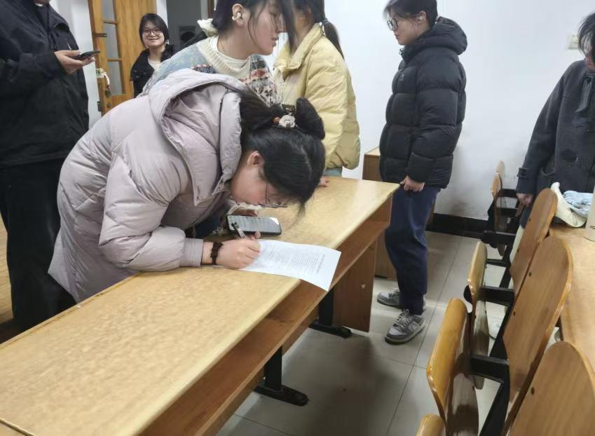 活动前期,权益部向各大一班级生活委员下发活动通知,明确签订流程、提交时间与分工要求,各班生活委员自行打印承诺书并准备相关资料,同时通过年级群、班级群推送反诈知识并强调活动意义;承诺书明确了学生在反诈工作中的责任与义务,将以往单向灌输式的反诈教育,转化为学生主动防范的行动自觉。