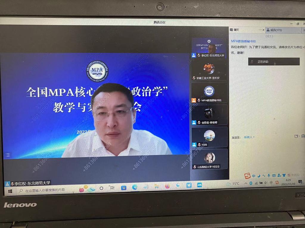 为学习贯彻落实党的二十大精神,进一步优化并改进MPA核心课程教学内容和方法,探讨学科最新研究动态,提升课堂教学效果,全国公共管理专业学位研究生教育指导委员会于11月19-20日举办了全国MPA核心课程“政治学”教学与案例研讨会。本次研讨会通过腾讯会议平台进行。我院《政治学》课程授课教师龙长安参加了培训会议。