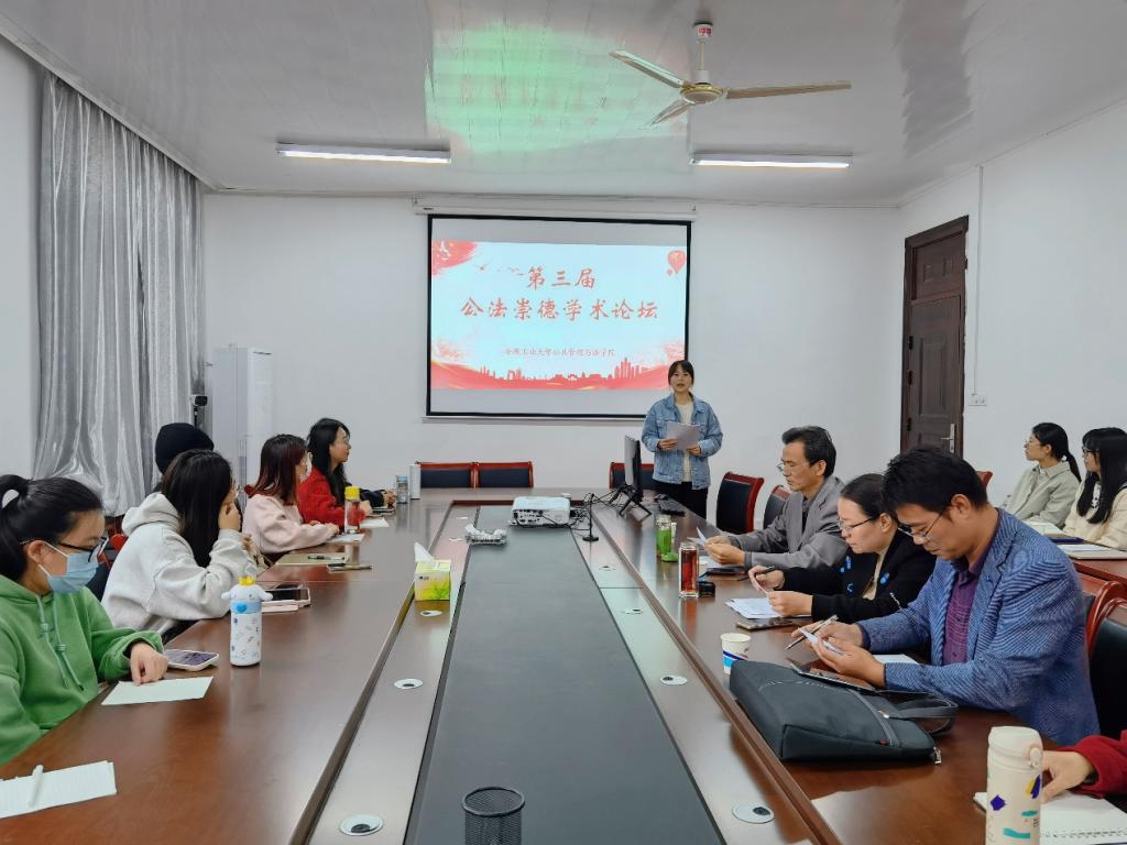 为营造良好的学术氛围,提高学生专业能力和学术水平,我院于10月28日下午举行公法第十期崇德学术论坛活动。本次论坛由2021级公共经济管理专业研究生刘贝贝主持,杨哲老师、许克祥老师与吴丽丽老师进行评阅,我院研究生以及感兴趣本科生参与旁听。