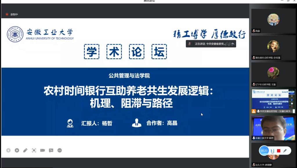 我院杨哲老师与硕士研究生高晶、陈涛依托安徽省哲学社会科学规划一般项目(医养结合养老服务需求评估、模式比较与政策回应研究)合作形成论文(农村时间银行互助养老共生发展逻辑:机理、阻滞与路径),受邀在分论坛中作主题报告,获得与会专家良好评价。通过参加此次论坛,有助于拓宽我院师生学术视野,激发科研热情。