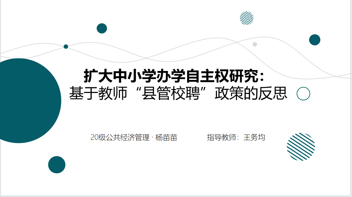 本次论坛流程如下:先由汇报人分享论文结构及内容,再由三位老师依次进行点评,三位汇报人均为2020级公共经济管理专业的研究生,第一位汇报人是汪雨航同学,汇报主题是:“国家-社会”关系理论视野下乡村人才变迁历程及发生机理研究;第二位汇报人是杨苗苗同学,汇报主题是:扩大中小学办学自主权研究:基于教师“县管校聘”政策的反思;第三位汇报人是王建凯同学,他汇报的主题是:Multicultural experiences and sense of school belonging:Roles of cultural identity and addiction to the social medial usage.
