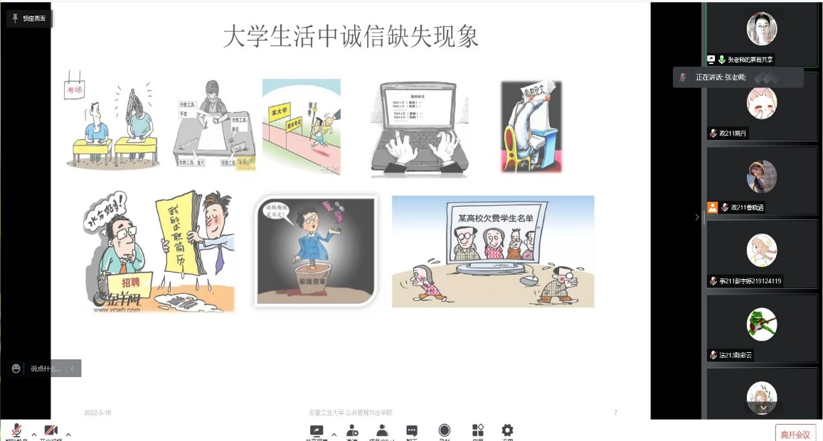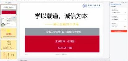 为树立正确的金融诚信理念,促进校园诚实守信风气的养成,由校学工部主办,我院承办的“学以载道,诚信为本”诚信金融知识讲座于5月16日下午在线上顺利举办,我院张增国老师应邀主讲,全校400余人参与。