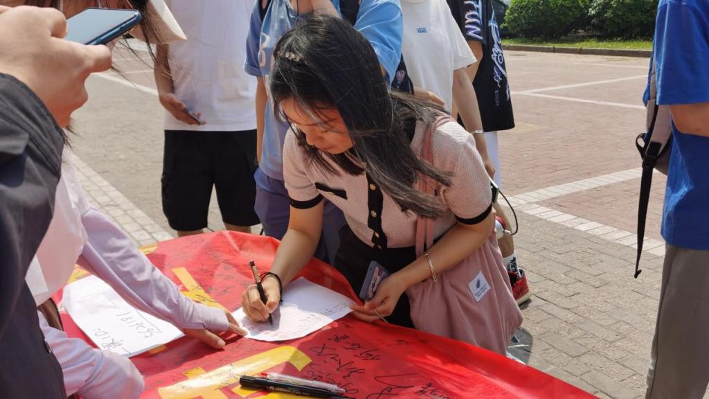 本次标语签名由安徽工业大学学生工作部(处)主办,公共管理与法学院承办,两校区两千余名学生共同参与。通过前期发布第二课堂活动,学生们踊跃报名,积极参与本次活动,在红色条幅上留下自己的签名。公法学院记者团进行现场采访。法学211班高浩杰表示,通过参加诚信标语签名,更为深刻地领悟到作为当代青年,传承诚信的优良美德是我们大学生义不容辞的责任。
