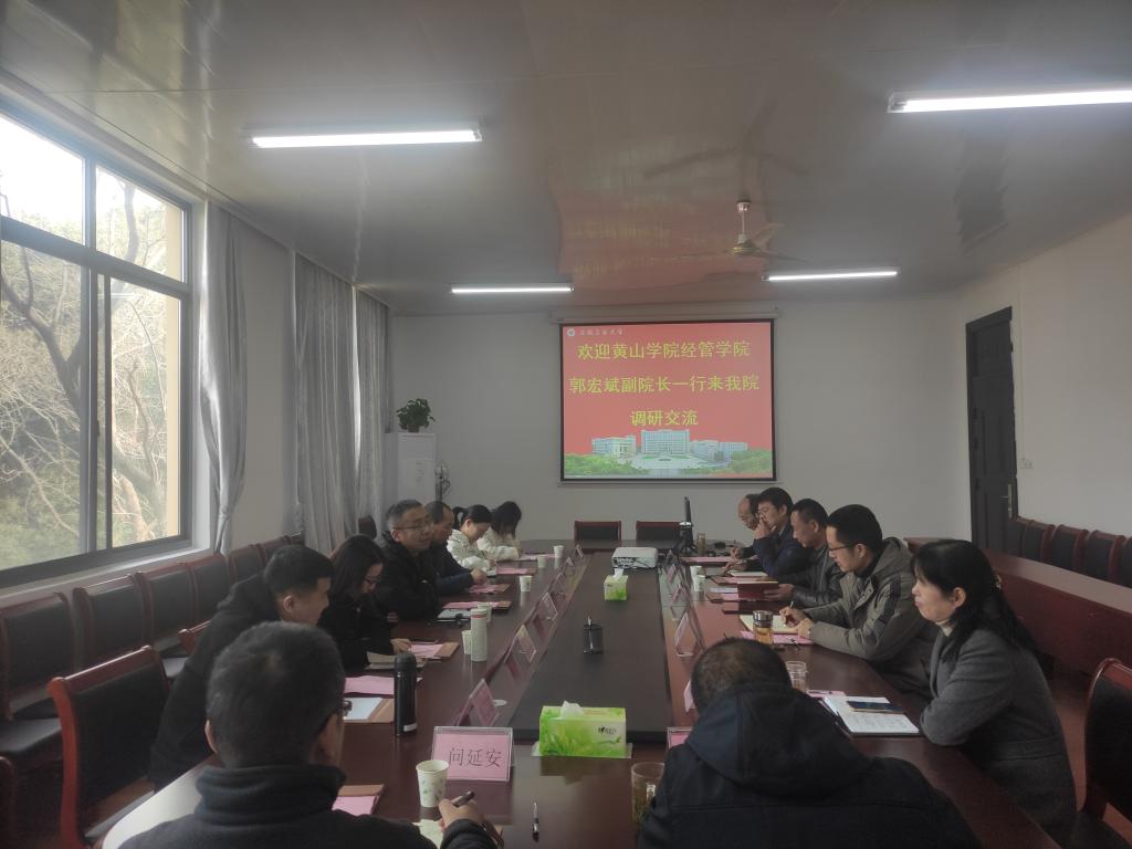 3月2日上午,黄山学院经济管理学院副院长郭宏斌一行六人来我院调研交流。学院领导班子热情接待了郭宏斌一行。学院公共事业管理专业负责人、MPA中心主任参加了交流会。