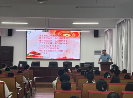 邢维迢老师在总结发言中指出,学生党员是党新鲜血液的来源,同学们要以马克思主义理论武装自己,自觉学习贯彻习近平新时代中国特色社会主义思想,坚定理想信念,认真学习专业知识,时刻以党员的标准严格要求自己,发挥好党员先锋模范作用。宣誓仪式在庄严的国歌声中圆满结束。