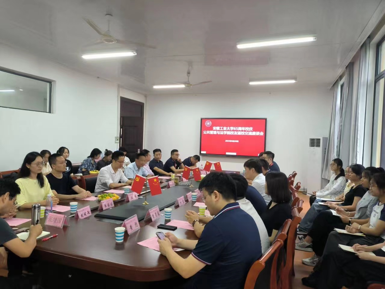 建校65周年之际,9月20日,公共管理与法学院在学院楼组织返校校友与师生座谈会。曹黎明、王许、张勇、黄杰、殷荣成、祝蓉、陈玉亮、周跃、李晨晨、黄彪、李成敏、顾磊、余晨、陆园园、胡皖敏等优秀校友,学院领导、系(室、中心)负责人代表,教师和辅导员代表等,以及学院新文科创新人才培养试点班的部分同学参加座谈。
