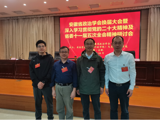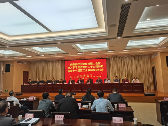 10月29日,安徽省政治学会换届大会暨深入学习贯彻党的二十大精神及省委十一届五次全会精神研讨会在省委党校(安徽行政学院)举行。省委党校(安徽行政学院)常务副校(院)长陈爱军对学会领导专家的到来表示欢迎。省社会科学界联合会党组书记、常务副主席李兵对大会的召开表示祝贺。他希望学会以此次换届为新起点,强化使命担当,在理论研究阐释上展现新作为;坚持服务大局,在打造繁荣兴盛的文化强省中发挥新作用;坚持守正创新,在完善自身建设上取得新提升。会上,学会第五届理事会会长、原省委党校(安徽行政学院)副校(院)长王正国代表学会第五届理事会作工作报告,省委党校(安徽行政学院)马克思主义学院院长汪兴福代表学会第五届理事会报告财务审计情况、章程修订说明。会议审议通过了《安徽省政治学会章程(修订)》,选举产生了省政治学会第六届理事会理事、领导机构人员、学术委员会成员。省委党校(安徽行政学院)副校(院)长王林武当选学会新一届理事会会长,我院董少林教授、袁同成副教授当选为常务理事。会议还围绕深入学习贯彻党的二十大精神及省委十一届五次全会精神进行了研讨,我院董少林教授、袁同成副教授、王务均副教授、曹新富博士与各位专家学者进行了深入交流。(撰稿人:董少林;审核人:杨哲)