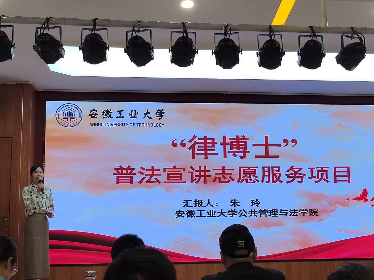 第五届新时代文明实践志愿服务项目大赛由马鞍山市文明办、市民政局、团市委联合举办,旨在深化拓展新时代文明实践中心建设,培育选树优秀志愿服务项目品牌,经过初赛志愿服务项目评选,共有17支队伍入选决赛。学校高度重视本届比赛,推选我院“律博士”普法志愿服务队参加竞赛,“律博士”普法志愿服务队立足于安徽工业大学校级普法宣传平台,以青年力量进行法制宣传教育,不断增强普法宣传面及法治的渗透力,经过项目决赛角逐,“律博士”普法志愿服务队获马鞍山第五届新时代文明实践志愿服务项目大赛三等奖。