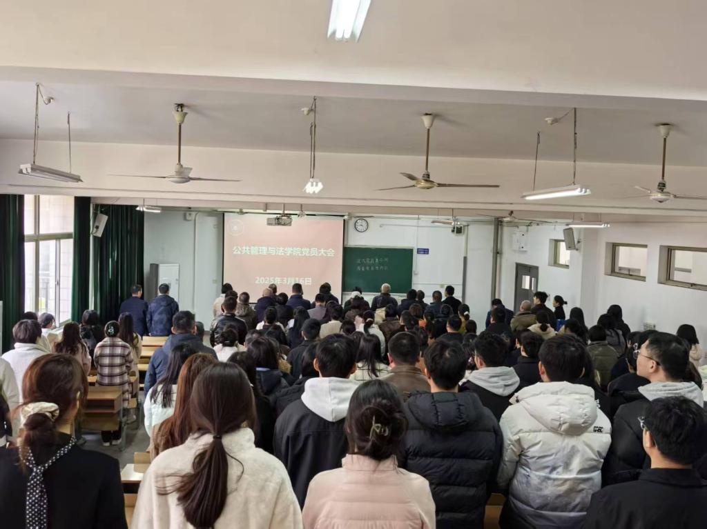 为做好学院党委委员补选工作,2025年3月16日下午,公共管理与法学院党委在佳山校区第二教学楼203教室召开全体党员大会,会议由学院党委书记胡正友主持。