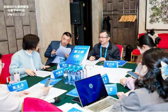 研讨会分组案例教学示范与互动环节,董少林老师参加第3组复旦大学政府服务研究中心主任李春成教授授课,主题为《公共政策论证与辩论——基于视频案例“不孝可不可以当官”》学习交流,并担任组长组织讨论环节。汪伟老师参加第5组山东师范大学公共管理学院曲延春教授授课,主题为《乡村振兴齐鲁样板是如何打造的?》学习交流。