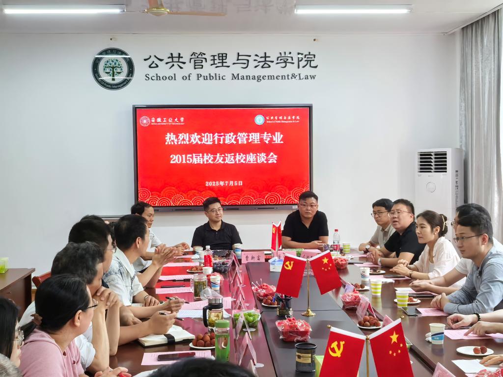2025年7月5日,公共管理与法学院行政管理系2011级校友毕业十周年返校座谈会在学院四楼会议室温馨举行。十余位校友从全国各地重返母校,与恩师欢聚一堂,追忆同窗情谊,分享十年成长历程,共话未来发展蓝图。