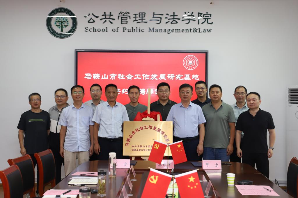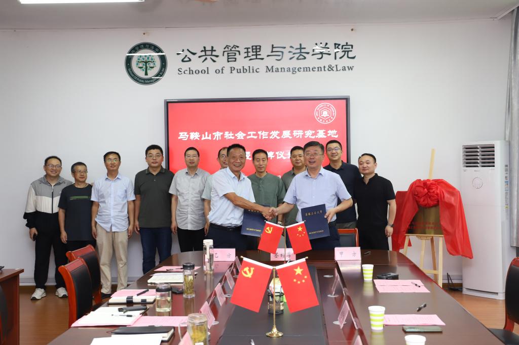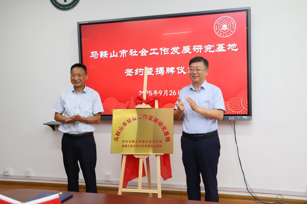 胡正友和张圣祥代表双方签署了《马鞍山市社会工作发展研究基地合作框架协议》,同时为“马鞍山市社会工作发展研究基地”揭牌。(撰稿:袁同成;审核:王务均、胡正友)