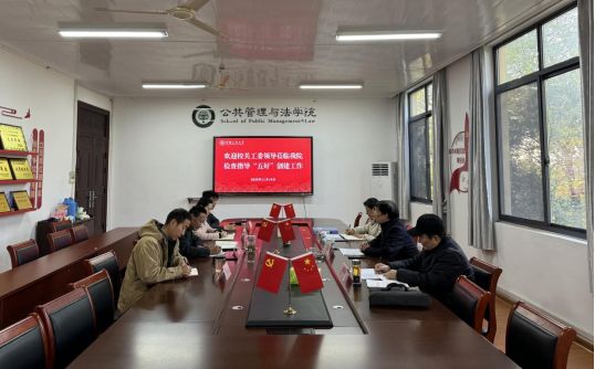 11月19日下午,校关工委副主任赵保平、胡源申,秘书章琼一行三人莅临公共管理与法学院,专题检查指导“五好”关工委创建工作。学院党委书记、关工委主任胡正友,正处级组织员江文丽,党委副书记、关工委副主任周浩然,学院团委书记、关工委办公室主任钱前参加检查指导座谈会。