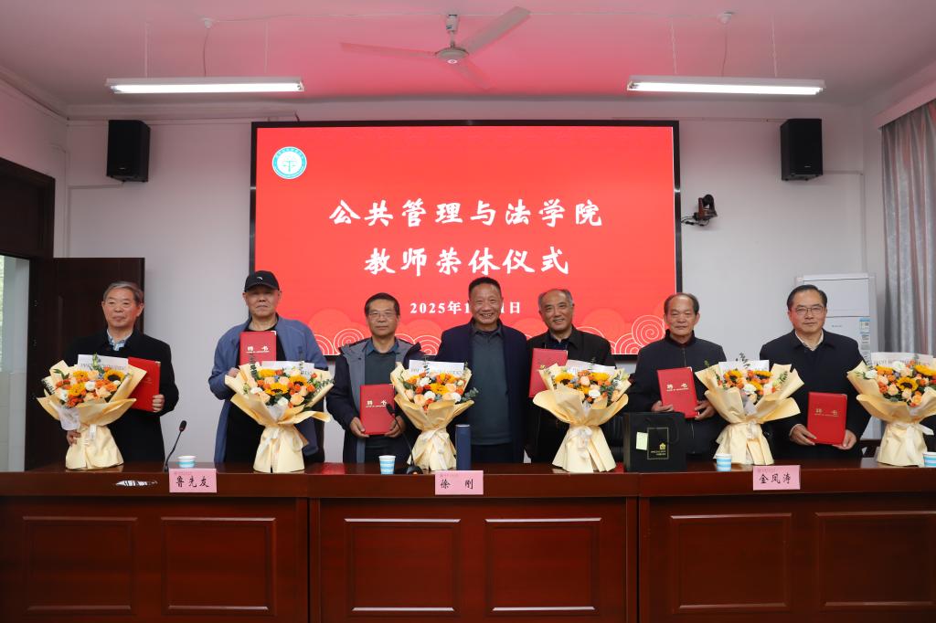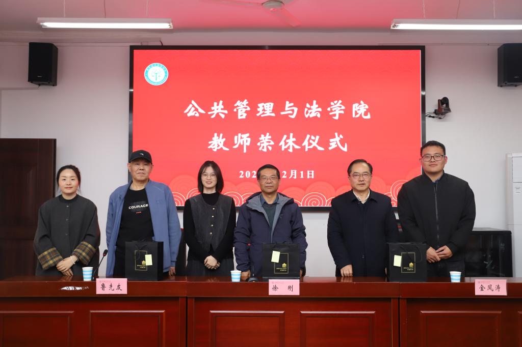 12月1日,公共管理与法学院在学院301报告厅举行教师荣休仪式。学院退休教师代表蔡保兴、徐德信、刘小才、徐刚、金凤涛、鲁先友、全体在职教职工、学院党员代表等参加仪式。仪式由学院党委书记胡正友主持。