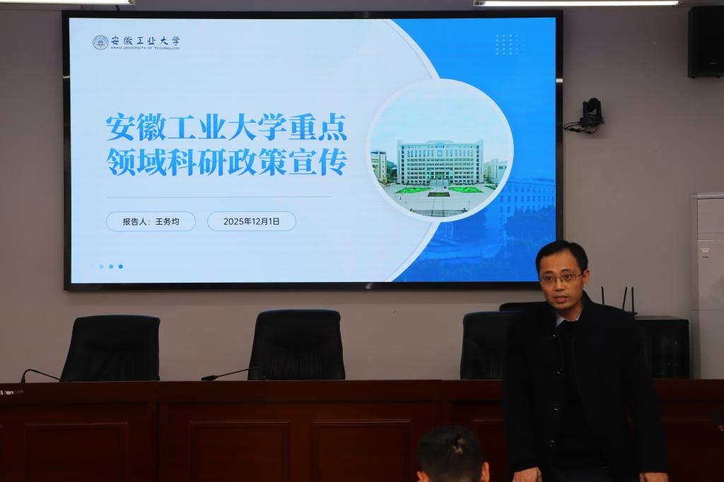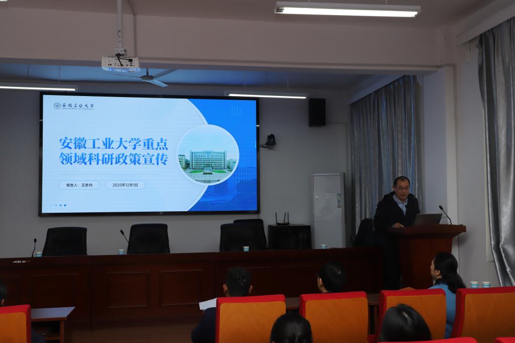 学院副院长王务均以“安徽工业大学重点领域科研政策宣传”为题,从科研职责划分、科研经费使用、科研项目管理、科研诚信遵守、职务成果赋权等五个方面开展了专题教育。科研院副院长吴金南就相关科研政策和学术诚信规范进行了详实的制度和案例宣讲,他希望全体师生进一步加强科研风险防范意识和科研诚信意识,严守学术道德底线。