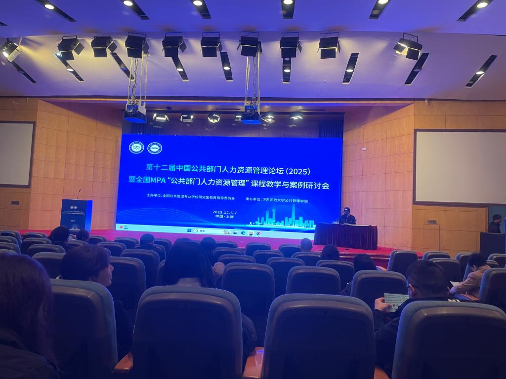 2025年12月6日至7日,第十二届中国公共部门人力资源管理论坛暨全国MPA“公共部门人力资源管理”课程教学与案例研讨会在华东师范大学成功举行。本次论坛由全国公共管理专业学位研究生教育指导委员会主办、华东师范大学公共管理学院承办,聚焦“数智时代公共部门人力资源管理的创新与挑战”,吸引了全国超百所院校参与。我院公共事业管理系曹林老师全程参与会议,并在“新时代公务员绩效管理”专题研讨环节间隙,与中国人民大学公共组织绩效管理研究中心主任方振邦教授进行学术交流。