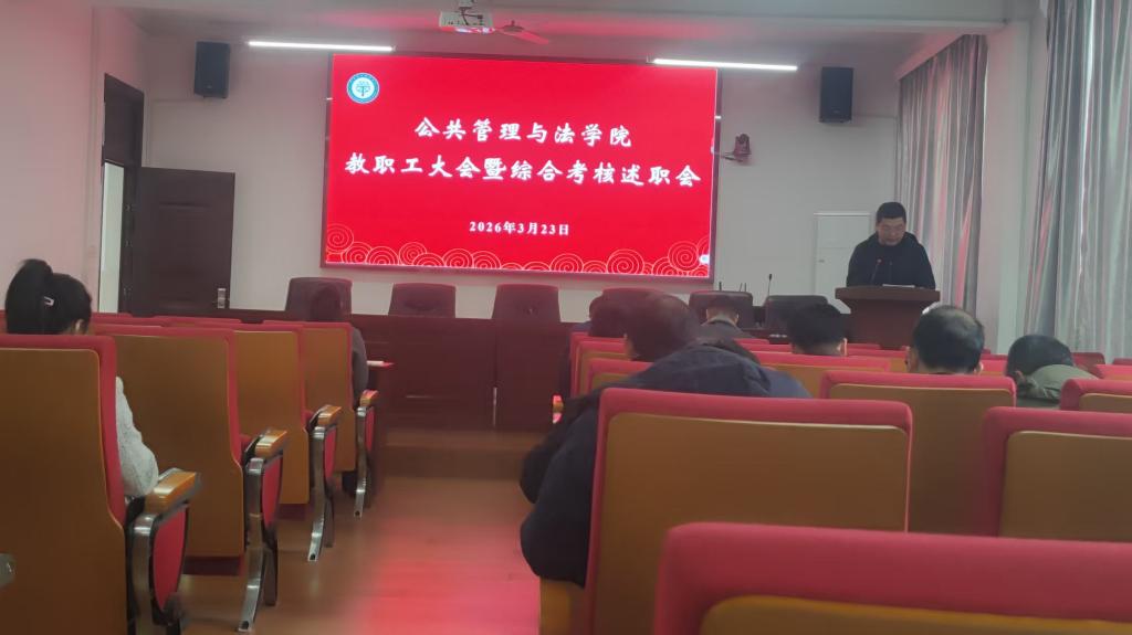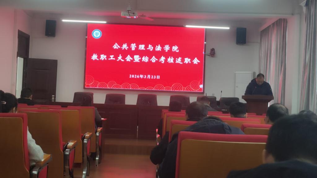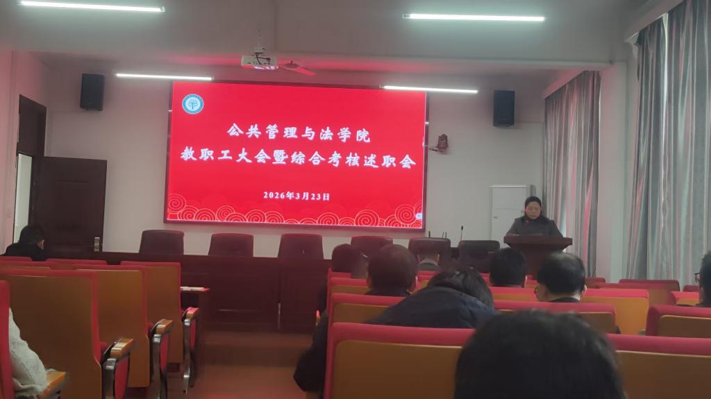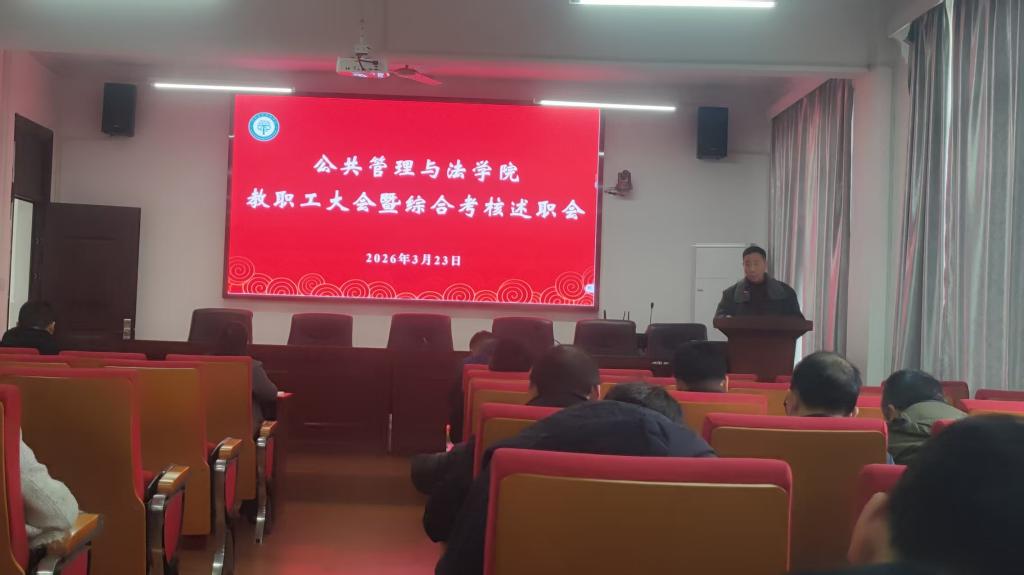 3月23日,公共管理与法学院在学院301报告厅召开综合考核述职会,并组织开展集体学习教育。学院全体教职工和学生代表参加会议和学习活动。活动由学院党委书记胡正友主持。