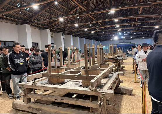 次日,师生团队聚焦现代公共服务与基层治理新业态。在祁门县电商物流产业园,同学们深入考察了集智能仓储、直播电商与快递共配于一体的综合服务平台。通过调研园区整合物流资源、赋能本地特色产业的实践,同学们深刻理解了“放管服”改革背景下政府优化营商环境的路径;其中,邮政统筹、多方协同的共配模式,更为解决物流“最后一公里”及公共服务供给创新提供了直观样本。随后,团队走访闪里镇文堂村及新安中医药博物馆。通过考察该村在古建保护、文化传承与旅游开发中的平衡探索,以及对地方文化资源的活化利用,同学们直观感受了基层文化治理的成效,为理解文旅融合促进乡村内生发展提供了生动注脚。