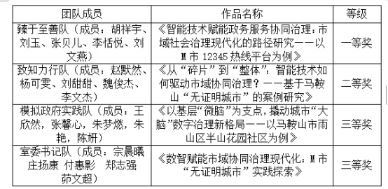 由安徽工业大学公共管理与法学院承办的2025年安徽省高校“模拟政府”大赛校内选拔赛已经落下帷幕,经过比赛角逐,1团队荣获一等奖,1团队荣获二等奖,2团队荣获三等奖。具体获奖名单公示见附件。公示期自2025年10月15日起,公示三个工作日,公示期间如有异议,请到公共管理与法学院反映。联系人:宫老师,电话:0555-2315336。